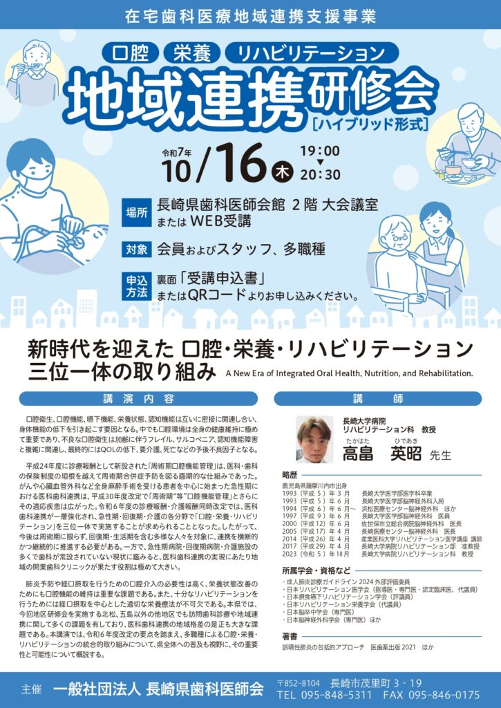 場所:長崎県歯科医師会館 2階 大会議室 または WEB受講